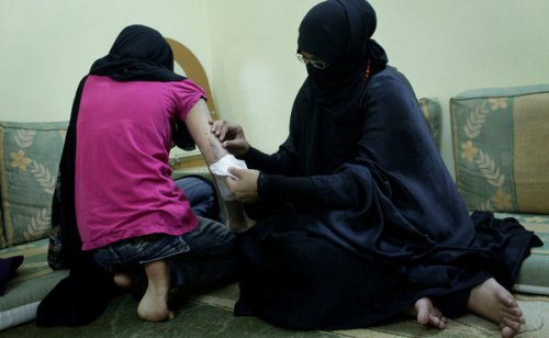 ذهبت إلى السلمانية وكذبت عليهم وقالت إنها سقطت من السلم. تقول إن عملية أجربت لساعدها قد فشلت. والآن يقوم المسعفون سراً برعايتها حتى يمكن لها أن تجري عملية أخرى.