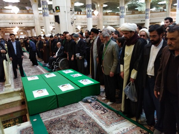 Photos and video clips of tens of thousands of Iranians and dozens of Bahrainis, who reside in Iran, taking part in a solemn funeral for the martyrs "Maitham Mohammed, Sayed Qassim Sayed Khalil and Sayed Mahmoud Sayed Adel," who mysteriously died at sea as they fled from Bahrain to Iran.