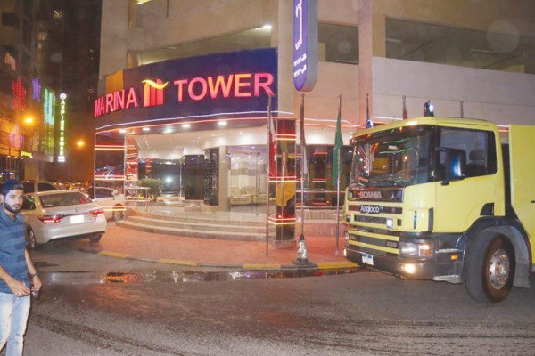 إخماد حريق اندلع في مبنى مارينا تاور بالجفير