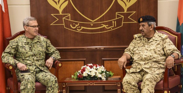 وقال بيان رسمي إن اللقاء ناقش "العلاقات القائمة بين البحرين والولايات المتحدة الأمريكية وما تشهده من تطور ونماء على الصعيد العسكري".
