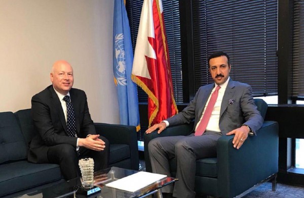 مرآة البحرين: التقى وكيل وزارة الخارجية للشؤون الدولية عبدالله بن أحمد آل خليفة، مساعد الرئيس الأمريكي والممثل الخاص للمفاوضات الدولية، جيسون جرينبلات، وذلك في مقر بعثة البحرين في مدينة نيويورك بالولايات المتحدة الأمريكية.