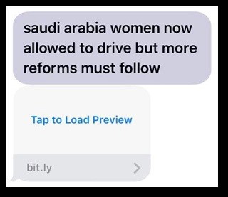 وبعد ذلك بفترة قصيرة، تلقّى الناشط [السعودي] رسالة مشبوهة أخرى من رقم غير معروف تتضمّن موضوع رفع حظر القيادة على النساء في ة السعودية، مستخدمة عنوان تقرير منظمة العفو الدولية الذي أصدرته في هذا الموضوع.