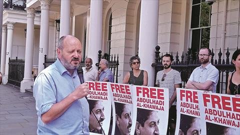اعتصام أمام سفارة البحرين بلندن: لتمكين حسن مشيمع والمعتقلين السياسيين من العلاجات الطبية