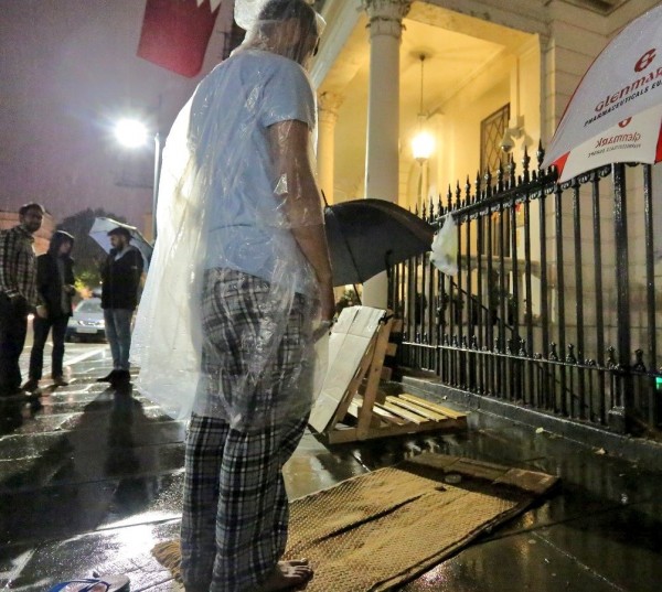 وينام مشيمع خارج السفارة البحرينية في لندن منذ مطلع الشهر الحالي (أغسطس/آب 2018)، معتمدا على دعم النشطاء والأصدقاء والمارة الذين يتوافدون إلى محل اعتصامه للتضامن معه.