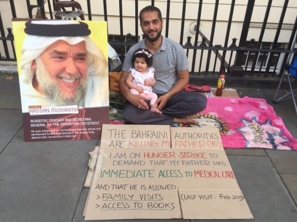 وقال علي، المعتصم عند السفارة البحرينية في لندن مضربا عن الطعام منذ 11 يوما، إن الأطباء رفضوا إعطاء والده دواء للسكر خلال هذه الزيارة، رغم أنه يعاني من المرض.