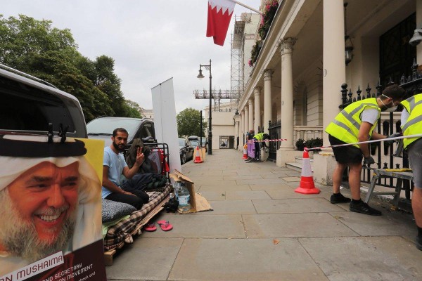 وكانت سفارة البحرين في لندن قامت فجر الأحد (11 أغسطس/ آب 2018) بسكب كميات كبيرة من المياه في الممرات المحيطة بالسفارة حيث يفترش علي مشيمع الأرض، لإجباره على مغادرة محيط السفارة.