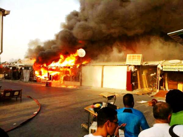 حريق هائل في سوق المقاصيص الشعبي