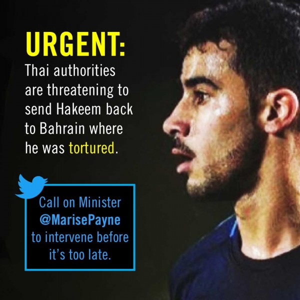 ذكر موقع الجزيرة أنّ أصدقاء ومؤيدي اللاجئ في أستراليا حكيم العريبي يصعدون الدعوات لإطلاق سراحه من الاحتجاز في تايلاند، حيث يواجه الترحيل إلى البحرين، موطنه الأصلي.