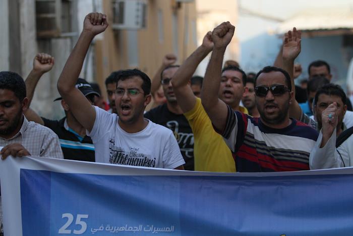وبعد الساعة الحادية عشرة مساءاً، انطلقت المسيرات من عشرات البلدات لتعلن اسئناف الحراك الثوري الذي أكد ائتلاف شباب ثورة 14 فبراير في بيان له بمناسبة حلول شهر رمضان أنه "سيكون حراكاً تصاعدياً".
