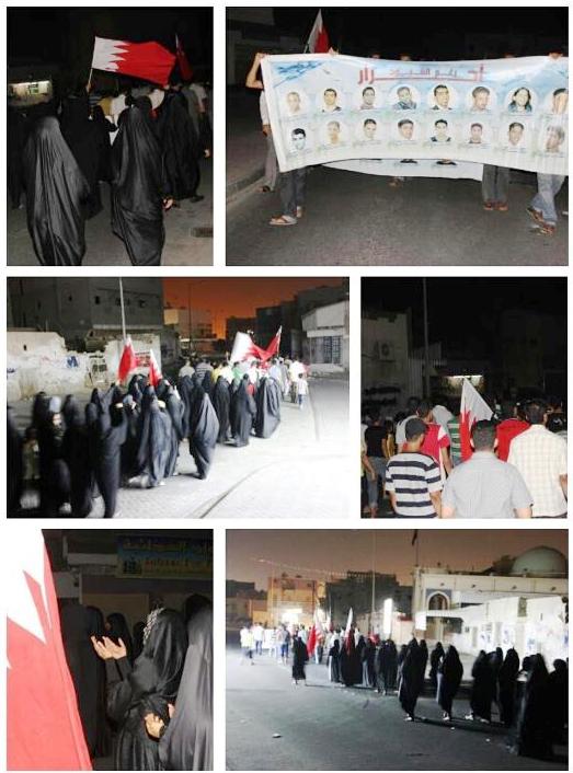 بدأ الحراك المسائي بوقفة نظمها ائتلاف شباب ثورة 14 فبراير/ شباط في منطقة الدوار (4) بمدينة حمد للتضامن مع موقوفي هذه المنطقة التي قدمت الكثير، وكعادتها هاجمت قوات المرتزقة التابعة لوزارة الداخلية هذه الفعالية، لتبدأ صدامات استخدم خلالها المرتزقة عبوات الغازات الخانق على المنازل والعوائل، لتكر بعدها سبحة الحراك الرمضاني المتصاعد.