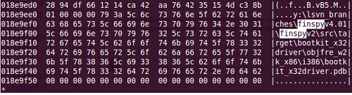 السلاسل الموجودة في الذاكرة "finspyv4.01" و "finspyv2" مثيرة للاهتمام بشكل خاص. أداة FinSpy هي جزء من تسلل FinFisher ومجموعة طاقم الرصد.(5)