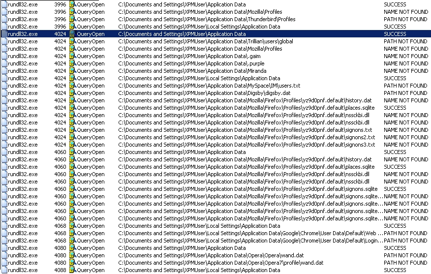 تحاول البرمجيات الضارة تحديد موقع تكوين وتخزين ملفات كلمة السر لبرامج التصفح المتنوعة ودردشة العملاء كما يتبين أدناه (انقر على الصورة للتكبير):
