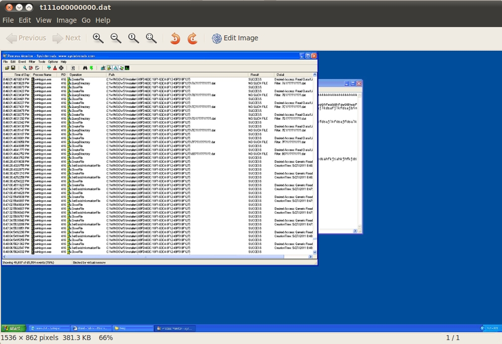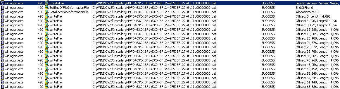 لوحظ أن البرنامج المصاب "winlogon.exe" يكتب هذا الملف من خلال عملية المراقبة (اضغط على الصورة للتكبير):