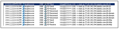 لمدة تقارب 10 دقائق، لوحظت حركة بين الضحية المصابة والقيادة وسيطرة الكمبيوتر في البحرين.