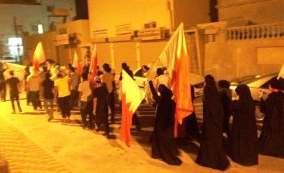 وليس بعيداً عن شارع 9 مارس/ آذار، خرجت في بني جمرة تظاهرة تحشيدية لفعالية "تقرير المصير 12" التي أعلن عنها "الإئتلاف" ليلة الجمعة المقبلة في مناطق "الدير، بلاد القديم وبني جمرة".