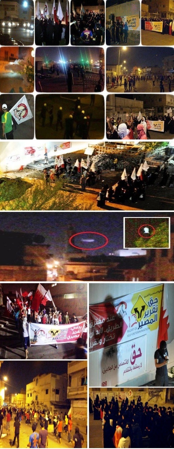 مرآة البحرين (خاص): وفي اليوم الثالث عشر من شهر رمضان الخميس 2 أغسطس 2012، كان الموعد الكبير، مع ثلاث اعتصامات لإعلان تمسك الشعب بحقه في تقرير مصيره كما نصت المواثيق والعهود الدولية، فعاليات حدد ائتلاف شباب ثورة ١٤ فبراير ثلاث بلدات لإقامتها، وهي: الدير، وبني جمرة، والبلاد القديم، وقد اختار المتظاهرون تكتيكاً جديداً، حيث أعلنوا عن الساعة الحادية عشرة كموعد لبدء الاعتصام كما أعلنوا عن ساحة في كل منطقة لإقامة الفعالية، إلا أن الاحتجاجات بدأت عند الساعة الثامنة مساءً في كل من البلدات الثلاث، وفي ساحات غير الساحات المعلنة.