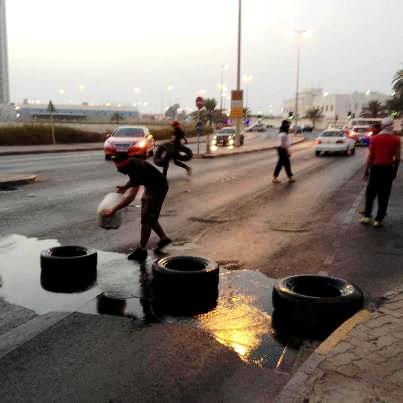 وقام متظاهرون غاضبون بقطع شارع التحرير (الواصل لجسر الملك فهد الذي يربط البحرين بالسعودية)، وشارع 14 فبراير/ شباط (الواصل بين المنطقة الغربية والعاصمة المنامة)، الأمر الذي أدى إلى اختناق مروري شل الحركة على الطريقين السريعين لمدة ساعات.