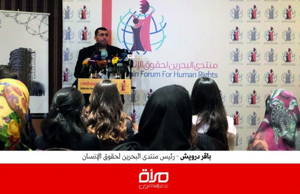 وتحدث رئيس المنتدى السيد باقر درويش، فلفت إلى أن البحرين تشهد حالة خاصة في هذا المجال حيث يرحب العنصر الأمني بضحيته بالقول "مرحبًا بك في البحرين، أنا يسموني الجلاد، وهوايتي التعذيب".