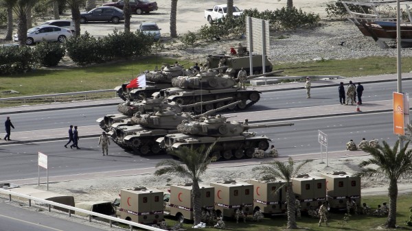 قال دات إن الدبابات البحرينية غادرت القاعدة العسكرية البحرينية في الجزء الجنوبي من الجزيرة، ومن الواضح أنها تتجه إلى العاصمة. لكن نيتها غير واضحة.