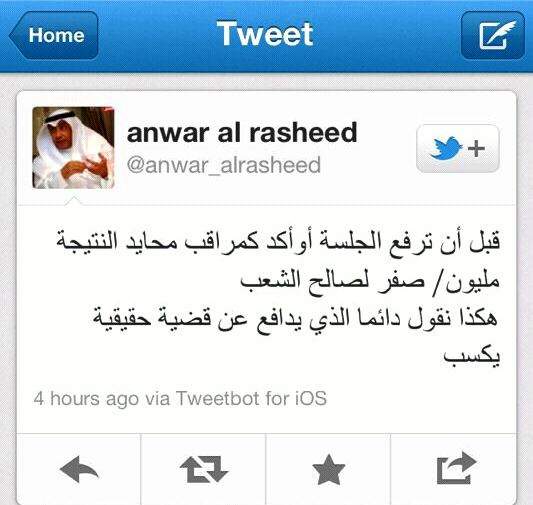 إلى ذلك، رأى رشيد، وهو من أبرز نشطاء المجتمع المدني في الكويت، والذي يحضر فعاليات مناقشة ملف البحرين في مجلس حقوق الإنسان، بصفة مراقب أن «النتيجة التي يمكن أن يخرج بها المراقب المحايد من حضوره ندوة الوفد الأهلي البحريني أن «النتيجة مليون / صفر لصالح الشعب».