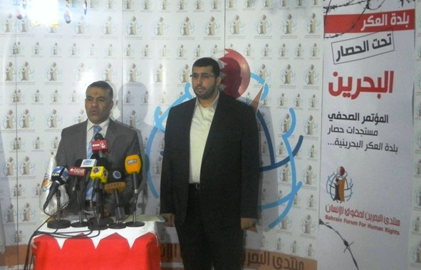 وقال إن «حصار حكومة البحرين لمنطق العكر يهدف إلى تنفيذ سياسة انتقامية من أهالي البلدة، مدعومة بحملة أمنية مخيفة».