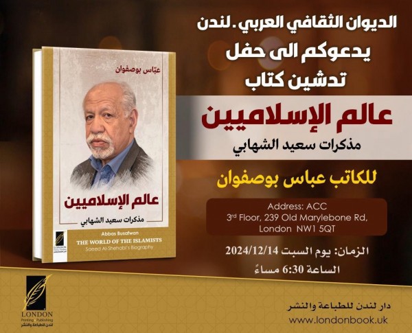 عن دار "لندن للطباعة والنشر"، صدر كتاب جديد بعنوان "عالم الإسلاميين.. مذكّرات سعيد الشّهابي"، للكاتب عباس بوصفوان.