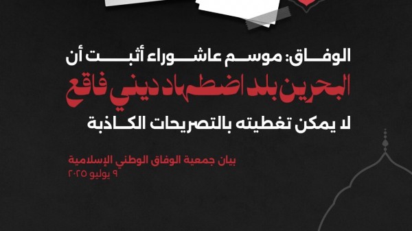 "الوفاق: موسم عاشوراء يكشف وجه الاضطهاد الديني الرسمي في البحرين ويفضح أكاذيب السلطة"