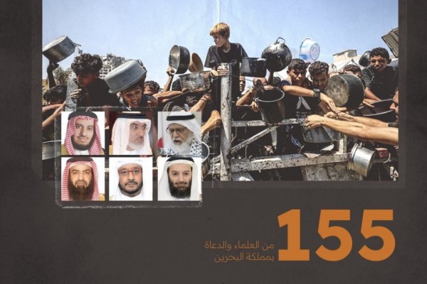 وحثّ العلماء والدعاة، الأمة الإسلامية وشعب البحرين، إلى مواصلة الوقوف مع أهل غزة برفض التطبيع، والمقاطعة الاقتصادية، وتقديم أوجه الدعم الممكنة سياسياً وإعلامياً وإنسانياً لكسر الحصار الجائر، وإطلاق حملات الدعم والإغاثة، والمشاركة فيها بالبذل والعطاء.