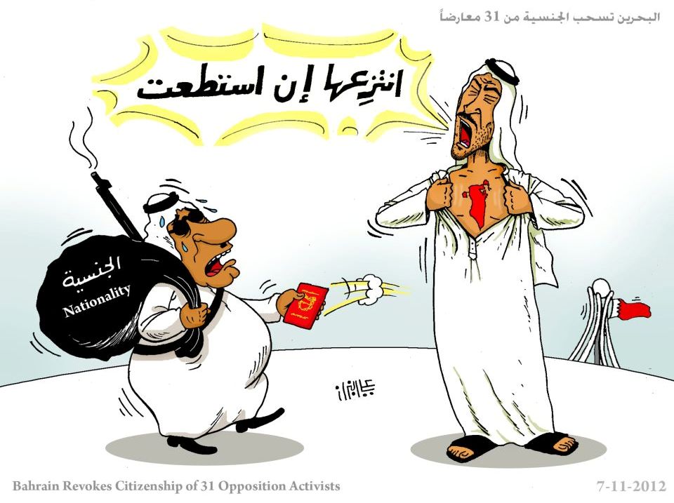 وقد سبقت البحرين دولة الإمارات في سياسة سحب الجنسية، كوسيلة للضغط على القوى المعارضة للنظام، وإسقاط كل متعلقات المواطنة عنهم، وبالتالي سحب كل المميزات، إن وُجدت. واليوم تأتي البحرين، رغم مخالفة هذه الخطوة للمواثيق الدولية، لتعمد إلى سحب جنسيات رموز من المعارضة والناشطين والأكادميين، لا لشيء إلا لأنهم معارضين للسلطة سلميًا. فالسحب تم من نُخب المجتمع البحريني المؤثرة في الحراك وفي وعي الجماهير البحرينية، بينما نجدها تجنّس مجموعاتٍ غريبة وبعيدة جغرافيًا وثقافيًا وبيئيًا عن المجتمع البحريني، بل بمستوى وعي متدنٍ لدرجة الجهل لدى بعض الفئات المجنسة، وهو ما يعكس رغبة السلطة في تشكيل شعبٍ جديد وفق مواصفات، أهمّها الجهل، وبالتالي التَبَعية العمياء لها كنظامٍ حاكم.