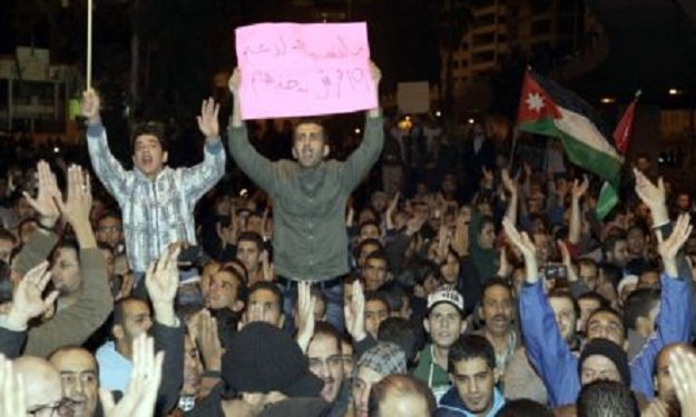 وأطلق المحتجون هتافات مناهضة للعاهل الاردني عبدالله الثاني، وطالبوا برحيل حكومة رئيس الوزراء عبد الله النسور.