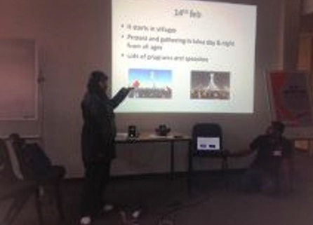 وقد علقت صور على جدران قاعة المؤتمر في النقابة الأسترالية تظهر انتهاكات حقوق الإنسان في البحرين، كما عرض فيلم وثائقي يتحدث عن تجربة الناشط حقوقي عبد الإله الحبيشي الذي كان أصيب خلال الهجوم على "دوار اللؤلؤة".