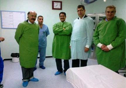الاطباء البحرينيون الثلاثة داخل غرفة عمليات في مستشفى في قطاع غزة
