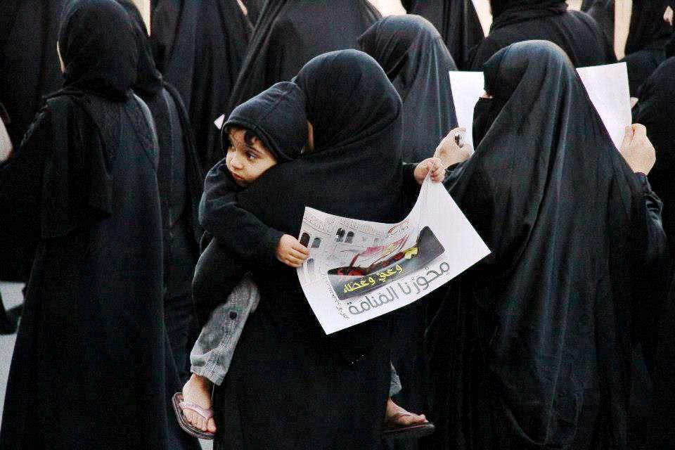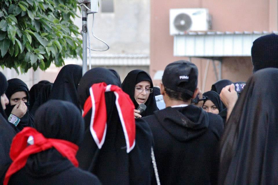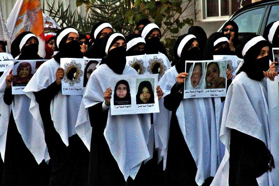 حشد كبير من النسوة توافدن إلى قرية مقابة من كل مكان، بينهن أمهات الشهداء وأخواتهن أو أزواجهن وبعض الناشطات. جابت المسيرة شوارع قرية مقابة ترفع صور الشهداء رجالا ونساء وترتفع في عمقها لافتة كتب عليها "يسقط حمد"، وعلى يسار تلك العبارة طُبعت صورة المعتقلة معصومة السيد التي لازالت خلف القضبان تقضي حكما بالسجن لمدة 3 أشهر، كذلك الحقوقية المعتقلة زينب الخواجة.