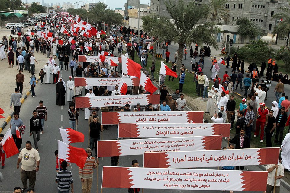 وسئل مقدمو الإخطار في تحقيق يوم أمس عن بعض الشعارات التي أطلقت في المسيرة مثل "تنح يا خليفة" و"متى متى الرحيل الشعب منك مل - أبناؤنا تقتل"، وقد رد مقدمو الإخطار (وهم ناشطون يتبعون الجمعيات السياسية وعلى رأسها جمعية الوفاق) بأنهم يرون أن هذه الشعارات "غير مخالفة للقانون".