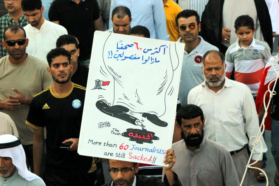 وفي 12 و13 أكتوبر/تشرين الأول، تم اعتقال طاقم قناة "سكاي نيوز" في البحرين ثلاث مرات خلال اليومين أثناء تصويره احتجاجات. وفي 15 أكتوبر/تشرين الأول تم منع موفد "الفيدرالية الدولية لحقوق الإنسان" ستيفاني ديفيد من الدخول إلى البحرين لحضور استئناف محاكمة الناشط الحقوقي نبيل رجب في المحاكمة المتعلقة بـ"إهانة" رئيس الوزراء.
