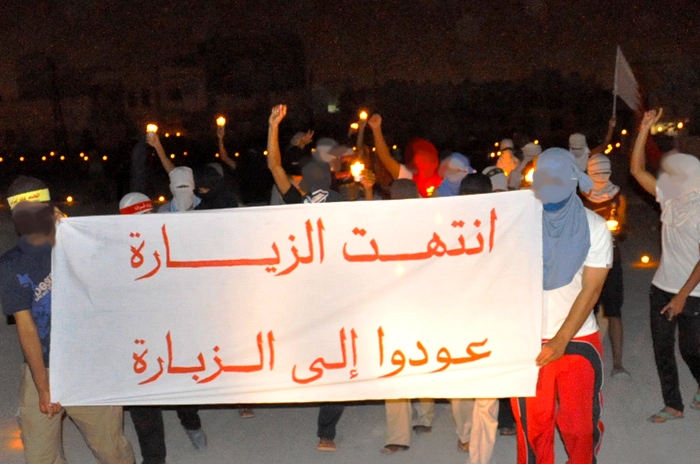 ارحلوا: أحد الشعارات التي رُفعت أثناء إقامة المعتصمين في دوّار اللؤلؤة (من 15 فبراير/ شباط إلى 16 مارس/ آذار 2011)، وأثار كثيراً من النقد والسجال. وعلى الرغم من أنه كان موجها بشكل حصريّ إلى العائلة الحاكمة، حيث كان المحتجّون يهتفون «انتهت الزيارة عودوا إلى الزبارة» (الزبارة منطقة في قطر استقرّت فيها عائلة آل خليفة قبل مجيئهم إلى البحرين 1783)، إلا أنّ موّالين للحكم يعتقدون بأنه موجّه للسنّة.