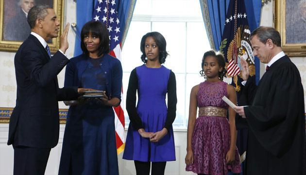 مرآة البحرين (خاص): أدى باراك أوباما اليمين الدستورية رئيسا للولايات المتحدة لولاية ثانية أمام وزير العدل جون روبرتز في مراسم خاصة في البيت الأبيض، وذلك في مراسيم استغرقت أقل من دقيقة.