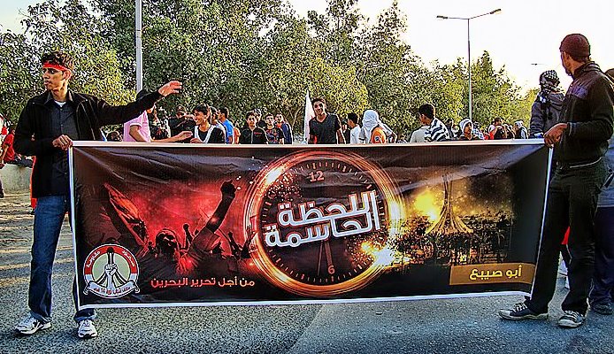 اللحظة الحاسمة: اسم إحدى فعاليات ائتلاف 14 فبراير/ شباط، التي سعت إلى توظيف أساليب «الكفاح اللاعنيف» كوسيلة للاحتجاج (26 ديسمبر/ كانون الأول 2011). وهي تقوم على «خروج كافة العوائل ومشاركة الجيران في جلسات عامة، عبر افتراش الأرض أمام المنازل، والاكتفاء بالجلوس، مع تجنب ترديد أي شعارات»، حسب بيان الإعلان.