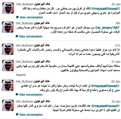 واعتبر أن «هذا الحوار سيكون بداية لانقلاب آخر» على حد تعبيره. وأضاف بأن «كلمات تأزيمية مثل معارضة، حوار، أطراف (...) يمكن أن أتقبلها قبل 14 فبراير/ شباط، لكن الآن، فهي محاولة فاشلة لدولة شيعية».