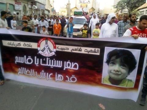 وفرقت مسيرة انطلقت من قرية الديه إلى مسقط رأس الطفل قاسم حبيب (8 أعوام) في كرباباد، غربي العاصمة المنامة، وشارك فيها الآلاف، لدى محاولتهم الوصول إلى دوار اللؤلؤة. وحاصرت أعداد كبيرة من قوات الأمن، مصحوبة بتحليق مروحي مناطق الديه وجدحفص والسنابس وكرباباد والقدم، وفرضت نقاط تفتيش، في مسعى لمنع تدفق المتظاهرين إلى تشييع الشهيد.