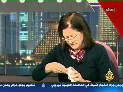 ويراد به السخرية من جهلها في التعامل مع جهاز «آيفون». حيث ظهرت على الشاشة في ختام البرنامج، وهي منهمكة بشدّة في البحث عن زر التشغيل، بطريقة بدا فيها الاستعصاء.