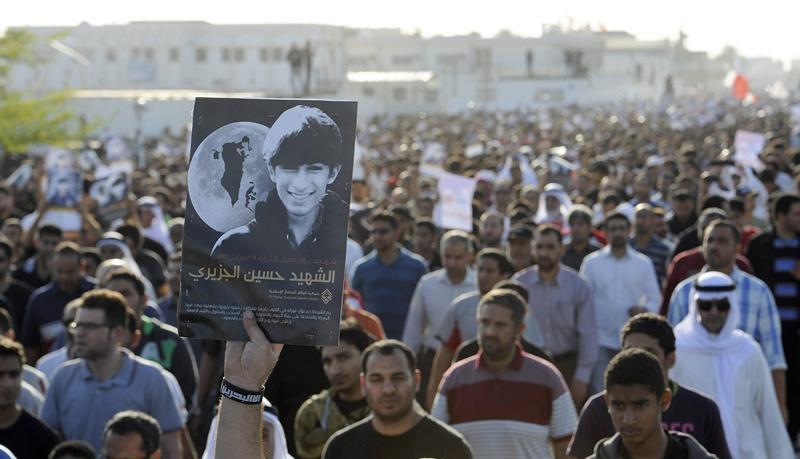 مرآة البحرين (خاص): لم يكن يوماً عادياً منذ صباح أمس السبت حتى غياب خطوط الشمس الأخيرة. السلطة أغلقت كافة المداخل والمنافذ الرئيسة المؤدية إلى جبلة حبشي ومقبرة جدحفص ـ الديه ووضعت نقاط تفتيش شديدة تمنع الداخلين والخارجين بالسيارات وتطلق القنابل الصوتية والغازات السامة على المشاة والأمواج البشرية الزاحفة نحو أداء واجب العزاء للشهيد الفتى حسين علي أحمد الجزيري (16 عاماً) الذي أصيب بثلاث طلقات شوزن في صدره وفخده وأجزاء من جسمة بغرض قتله، بينما عيون المشيعين تتجه نحو ميدان اللؤلؤ رمز حُرية توحيد غضبهم لتحريره.
