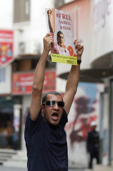 هذا المشهد يحمل دلالة رمزية كبيرة تشير إلى أن رجب القابع خلف القضبان لا يزال موجوداً في المنامة يقود المحتجين السلميين المطالبين بممارسة حقوقهم الإنسانية، حق التعبير والاحتجاج السلمي على الظلم والاستبداد والانتهاكات المتعددة.