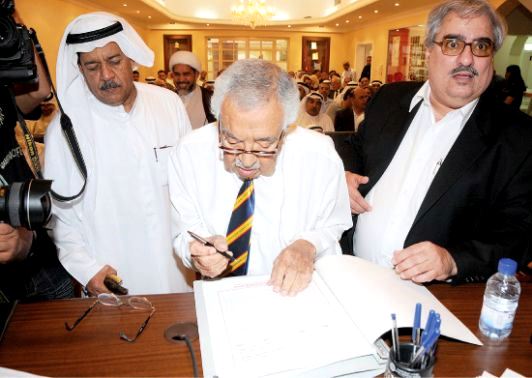 الراحل الصباح في توقيعه على عريضة التجنيس (أرشيف)