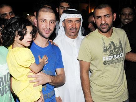 الشقيقان حبيل مع والدهما يوم انفكاك القيد
