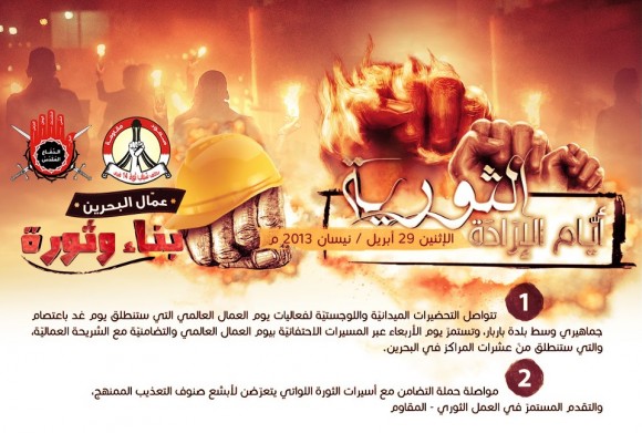 أقام اعتصاما عصر اليوم قمعته قوات النظام: «الائتلاف» ينظم مسيرات مركزية بمناسبة يوم العمال تحت شعار «عمّال البحرين .. بناءٌ وثورة»