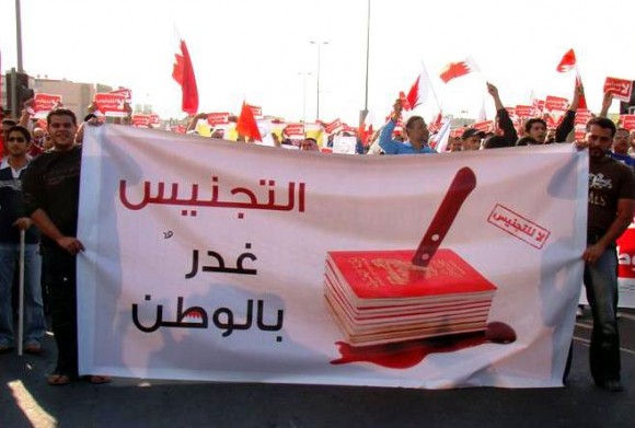 وأشارت "الوفاق"، في بيان، إلى أن "ما تداولته بعض الجهات الاعلامية من أخبار عن تجنيس 5000 لاجئ سوري من العوائل النازحة يكشف عن استمرار المخطط الرامي إلى تدمير البحرين على يد النظام"، مؤكدة أنه "مشروع لخلق فئة موالية للنظام الذي يفتقد إلى الشعبية ويتلقى المزيد من الضغوط للاستجابة إلى المطالب في التحول الديمقراطي".