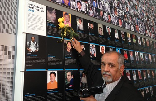 مرآة البحرين: دشن متحف واشنطن الإخباري «نيوزيوم» أمس الاثنين 14 مايو/ أيار، في مبناه الشهير بالعاصمة الأميركية «واشنطن»، جدارية ضمت أسماء الصحفيين الذين قتلوا خلال العام 2012، وحوت اسم المصور البحريني الشهيد أحمد إسماعيل.