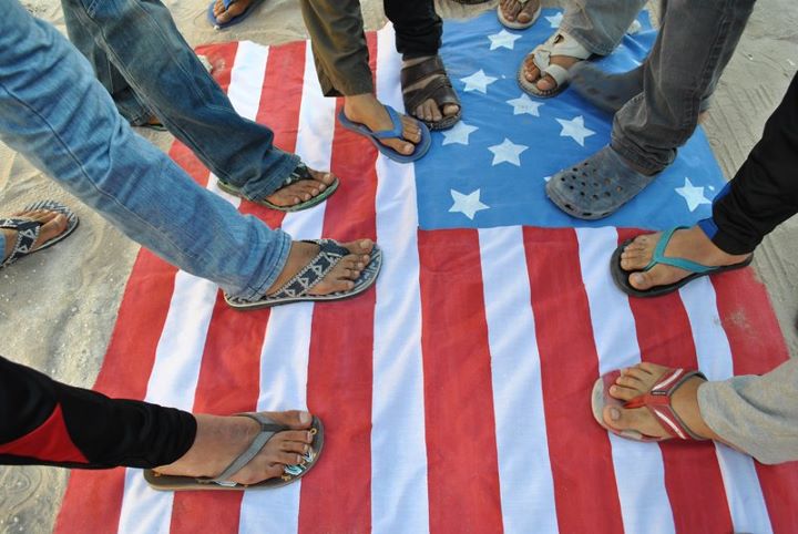 من جانبها، ردة فعل جماعات المعارضة كانت أكثر فتورًا، على سبيل المثال، تنظم يوم لحرق العلم الأمريكي (والدوس) عليه في كانون الثاني/يناير 2012. ومع ذلك، فإن المشاعر المعادية لأمريكا حقا غير مفهومة حتى بين الحركات الشبابية الراديكالية، ربما لأن لديها معارك أكثر إلحاحا مع شرطة مكافحة الشغب، وربما، في نهاية المطاف، لأنه لا يزال لديها ثقة أكبر في إرادة وقدرة الولايات المتحدة في الضغط من أجل الإصلاح أكثر من الجهات الفاعلة الإقليمية والدولية الأخرى. في الواقع، جدير بالذكر أنه بعد سنتين ونيف من بدء الانتفاضة، لم يكن هناك أي نشاط احتجاجي ملحوظ ضد القاعدة البحرية في الجفير، القوة الأمريكية الأبرز في البحرين، والتي تقع إلى جانب قرية يغلب عليها الطابع الشيعي.