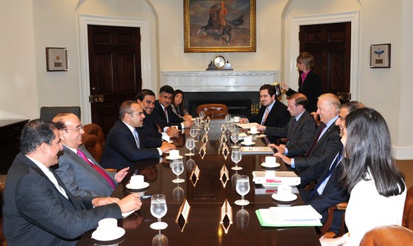 والتقى ولي العهد البحريني أيضا، وليم بيرنز وكيل وزارة الخارجية الأميركية حيث جرى تبادل وجهات النظر حول قضايا المنطقة والتطورات الراهنة في الشرق الأوسط. وخلال اللقاء أشاد سلمان بالدور الأميركي كشريك في تحقيق فرص السلام والاستقرار في المنطقة والشرق الأوسط.